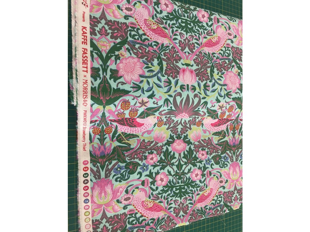 Luxusní bavlněné plátno, známý vzor William Morris v originálním názvu Strawberry Thief, nádherná nová kolekce Kaffe Morris pro Free Spirit Fabric.