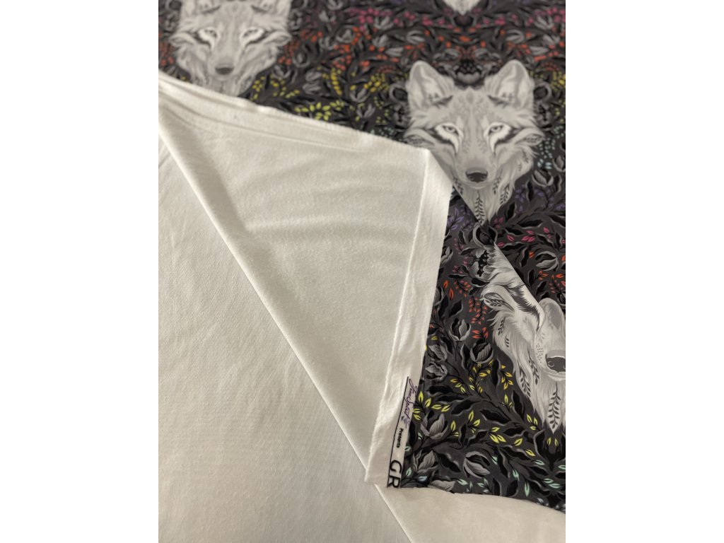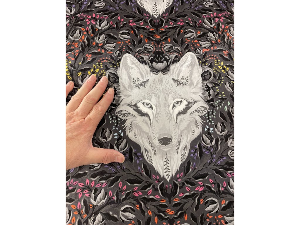 Super soft Minky, made from 100% Polyester from the 2025 Graywork collection from Tula Pink.Wolf of Pink Street in carbon